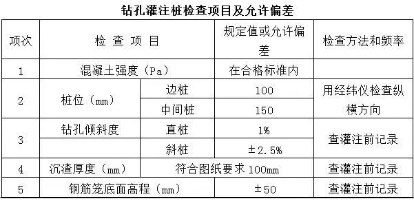 4.7鉆孔灌樁樁的檢查項目及檢查方法見下表。